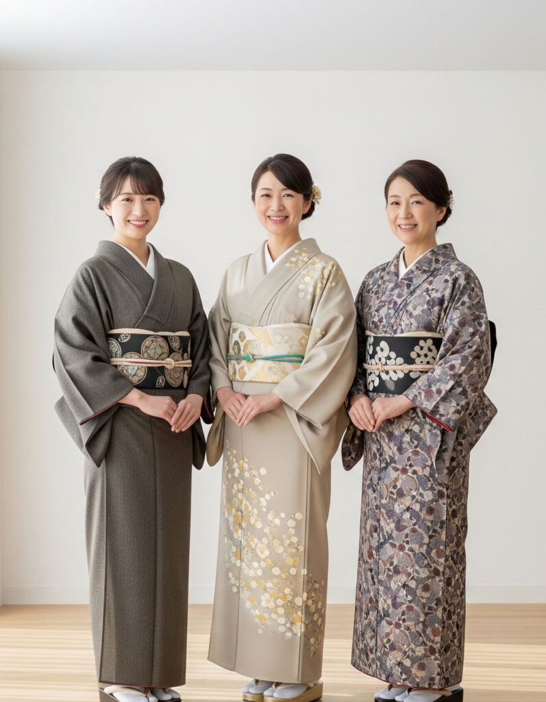 落ち着いた雰囲気の中で、ゆっくりと着付けの基礎を身につけていただけるグループレッスンです。